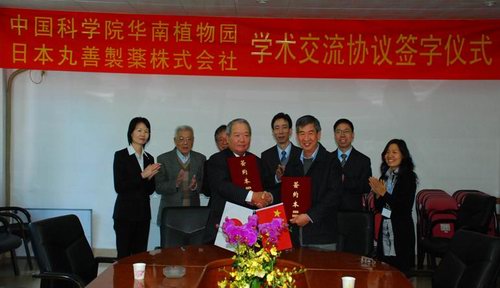 11月17-22日,日本丸善制药株式会社社长井元胜惠、会社下属的综合研究所所长水谷健二等一行3人访问华南植物园。华南植物园主任黄宏文及相关人员热情接待了井元胜惠一行。 在魏孝义与谢海辉研究员等人陪同下,井元胜惠一行参观了华南植物园植物化学与生物技术实验室、科研温室、标本馆、大型景观温室群、木兰园、姜园、药用植物园等功能园区,对华南植物园拥有如此丰富的植物种类与优美的园林景观给予了高度赞赏。访问期间,宾主双方开展了学术交流与合作洽谈,并签订交流协议。黄宏文代表华南植物园,井元胜惠代表丸善制药株式会社在“中国科学院华南植物园与日本丸善制药株式会社学术交流协议书”上共同签字。 日本丸善制药株式会社是国际著名的化妆品和食品功能性添加剂的研发与生产企业。该会社从上世纪80年代末开始与华南植物园建立并保持友好往来。属下的综合研究所拥有先进的分析与评价技术,在天然功能性物质研发上处于国际领先地位。水谷健二博士现为华南植物园客座教授。
