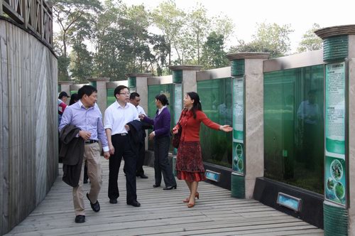 寇宣奎一行参观了世界植物奇观——展览温室群景区,他们高度赞扬了景观温室的园林设计、植物布局和造景艺术,并对引自世界各地的奇异植物惊叹不已。代表团还参观了“帝王花展”,对华南植物园在亚运期间成功策划展出如此美丽绝伦的花展给予了高度评价。