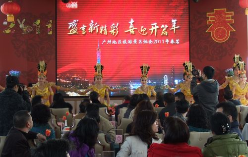 2月14日,广州地区旅游景区协会在珠江游船举办“盛享新精彩 喜迎开篇年”2011年春茗活动。广州地区各旅游景区、旅行社、媒体约200人参加了活动。广州地区旅游景区协会副会长、华南植物园园艺中心执行主任廖景平,广州地区旅游景区协会副秘书长、华南植物园园艺中心常务副主任蒋厚泉率队参加了春茗活动。