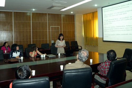 访问期间,两位院士分别作了3场精彩的学术报告。Renner教授的报告为:1)The evolution and function of sex chromosomes in land plants; 2)Oil bees and oil-offering flowers: Disentangling coevolution and host switching; 3)The origin of cucumber and melon: Both species have their wild progenitors in Asia, not Africa. Ricklefs教授报告是:1)Global distribution of species richness: patterns and explanations; 2)Distribution and abundance of species within regions; 3)Speciation, extinction, and the regional pool of species。来自华南农业大学、华南师范大学、中山大学、中科院昆明植物研究所、上海生科院植物生理生态研究所、中科院植物研究所及华南植物园等单位的科研人员参加了学术报告会和交流活动。两位院士还与华南植物园植物系统与进化生物学领域研究人员与学生就国际进化生物学的发展进行了深入交流和讨论,并对部分青年科学家和在读研究生的报告进行现场点评和提出建议。
