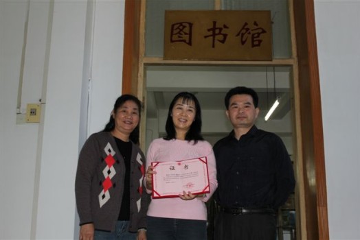 孙成仁先生的女儿孙远(中)接受华南植物园图书馆颁发的“捐赠证书”