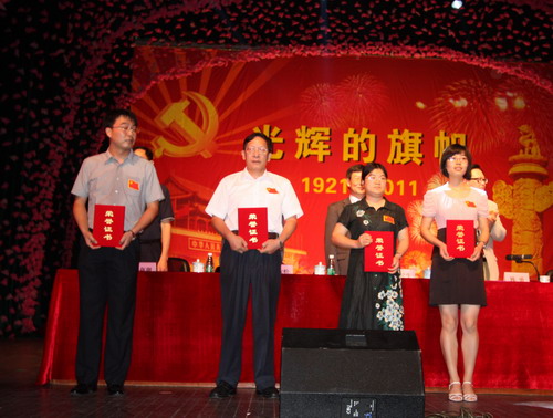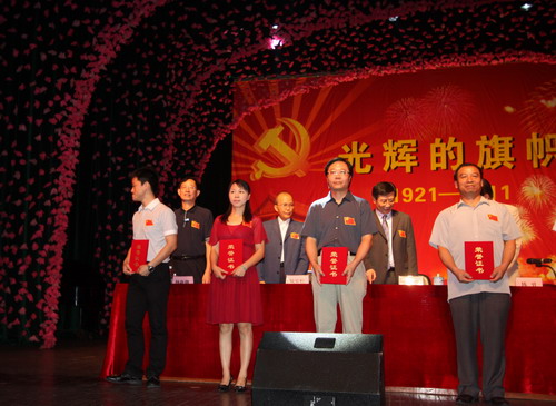 陈忠毅同志(左2)等被授予“优秀党务工作者”称号