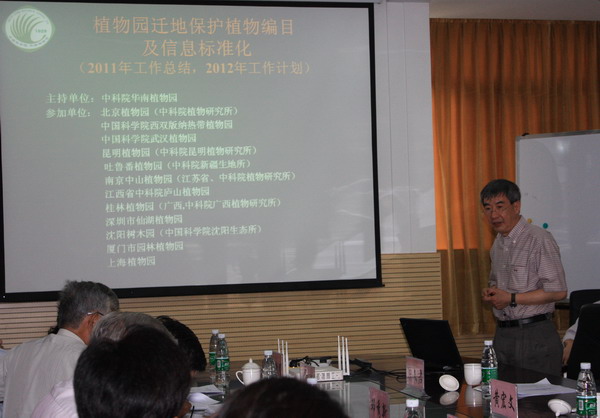 4月23日,科技基础性工作专项“植物园迁地保护植物编目及信息标准化(2009FY120200)”项目2011年工作总结及专家组咨询会在华南植物园召开。科技部基础研究司陈文君处长,中科院计划财务局赵志刚处长,以及邓秀新院士、洪德元院士、黄宏文研究员、贺善安研究员、许再富研究员等专家、领导和来自各参研植物园科研人员30余人参加会议。