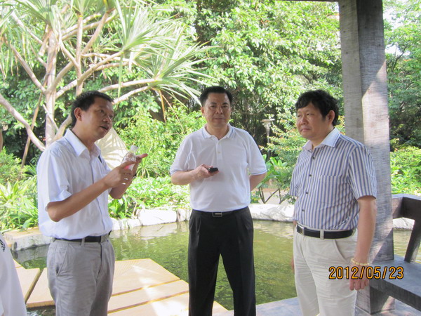 陈健伟(中)陪同华南植物园代表调研并交流东湖公园改造方案