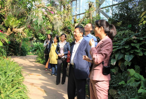 随后,新田县代表团一行还在园艺中心有关人员的陪同下重点参观了世界植物奇观——温室群景区,并对温室群景区的设计理念、环保理念、珍稀物种培育给予高度评价。