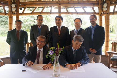 在秘鲁期间,黄宏文陪同白春礼院长与秘鲁圣马可斯大学校长Pedro Cotillo等举行了会谈,并代表华南植物园与秘鲁圣马可斯大学签署了联合实验室合作意向书。联合分子实验室的建设将为华南植物园与圣马可斯大学的合作提供更高的平台,双方将在生物多样性资源的研究、保护、利用与开发等方面开展实质性合作。白春礼院长出席了华南植物园与圣马可斯大学联合实验室的签字仪式,并接见了华南植物园与秘鲁圣马可斯大学2014年联合科学考察队的15名队员。