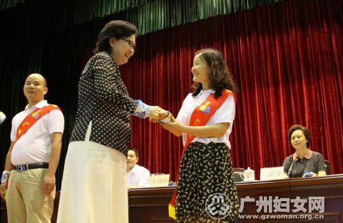 广州市委常委王晓玲为周艾蓉同志授奖(照片来源:《广州妇女网》)