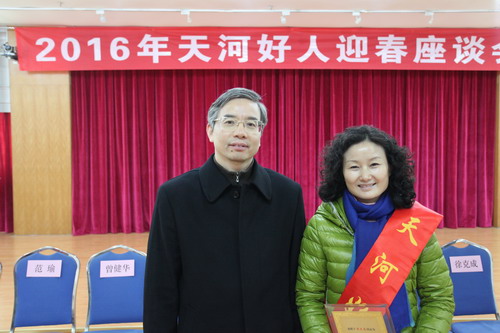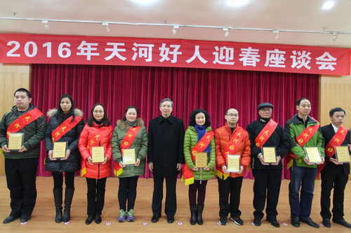 1月26日上午,2015“爱心天河、好人同行”天河好人迎春座谈会在区政府北会场隆重举行。广州市天河区委书记林道平,区委常委、区委宣传部长陈晓晖出席座谈会。活动迎来了“广州市道德模范”、“广州好人”等道德标兵、身边好人逾80人叙旧迎新,华南植物园周艾蓉同志作为“广州好人”代表之一参加了活动。