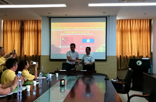 8月17日,中国科学院华南植物园与老挝东盟国际森林开发集团有限公司(ASEAN International Forest Development Group)关于檀香规模化育苗及栽培技术合作签约仪式在华南植物园举行。华南植物园马国华研究员、吴坤林副研究员、张新华助理研究员等及老挝东盟国际森林开发集团代表尹廷浪等共同出席。