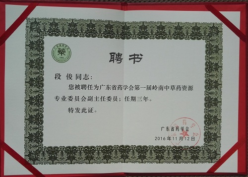 华南植物园段俊研究员当选岭南中草药资源委员会副主任委员