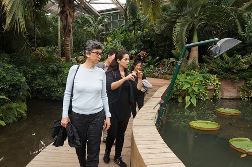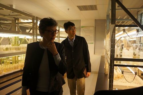 会谈结束后,Gisella主席在分子生物分析及遗传改良中心董志诚副主任带领下参观了植物基因工程中心实验室,并与区永祥研究员就植物基因工程中心的研究工作进行了探讨。Gisella主席随后还参观了华南植物园展示区,对植物园景观布置,温室建设,专类园管理等多方面进行了全面了解。