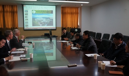 Erik Lithander博士介绍了此次访问的目的,他表示广州和布里斯托是友好城市,在英国排名第4的布里斯托大学也有自己的植物园,特别希望此次访问与华南植物园相互增进了解,为未来科研合作打下基础。Tim Gallagher教授也介绍了该校植物园的情况,表示对药用植物方面合作的浓厚兴趣。