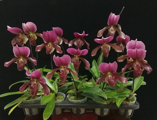 “紫旗兜兰”(Paphiopedilum ‘Ziqi’)、‘紫光兜兰’(P.‘Ziguang’)和‘紫君兜兰’(P.‘Zijun’)都是2006年以红旗兜兰(P. charlesworthii)为母本、‘黑光兜兰’(P. ‘Black Light’)为父本进行杂交,经无菌播种、单原球茎选择、组培快繁选育而成。多年多点试验结果表明,其遗传性状稳定一致。