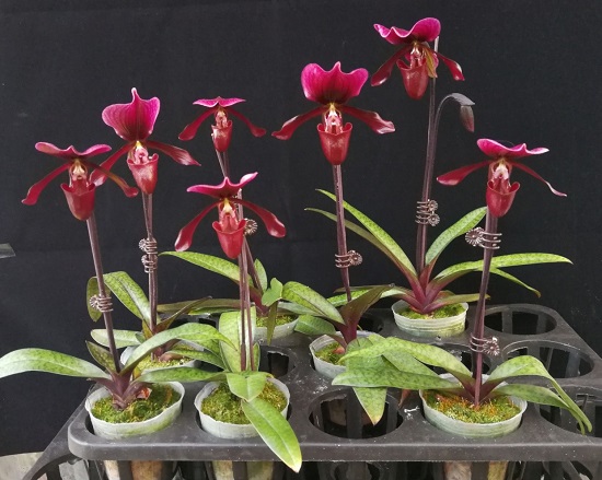 众所周知,兰花同其它植物一样,其杂交种的杂交后代性状会发生分离,一般等其开花后选择优良株系进行组织培养培育新品种,但兜兰是兰科植物中组织培养难度最大的属之一,尽管华南植物园在摩帝类兜兰的组织培养方面取得了重要进展,获得了国家发明专利(授权号ZL201610024474.9)并申请了国际发明专利(PCT/CN2016/072150)且在日本申请了专利权保护(2016-574460),但采用温室中的大部分其它兜兰的开花株的侧芽为外植体时由于污染率高、生长速度慢、增殖倍数低而难以成功。我园曾宋君研究团队利用红旗兜兰和‘黑光兜兰’杂交后获得的种子进行无菌播种萌发后获得的单个原球茎分别进行组织培养获得了100多个单克隆株系并进行栽培至开花,从中选育出了3个观赏价值高的兜兰新品种并进行了审定。此方法不但解决了兜兰从温室中取外植体组织培养难的问题,也大大加快了育种速度。