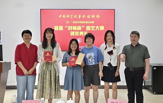 5月23日,2021年华南植物园首届“封怀杯”园艺大赛颁奖活动在园艺中心举行。华南植物园副主任闫俊华研究员,以及仲恺农业工程学院副校长朱立学教授,仲恺农业工程学院园艺园林学院党总支书记陈晓玲教授,广东生态工程职业学院党委书记张方秋教授,广州市文化广电旅游局副局长柯显东,天河区文化广电旅游体育局局长江波,广东省景区行业协会秘书长周志红,广州地区旅游景区协会秘书长邹义荣等领导与嘉宾应邀出席;来自参赛院校的师生、华南植物园员工等100余人参加。会议与活动由园艺中心副主任廖景平研究员主持。