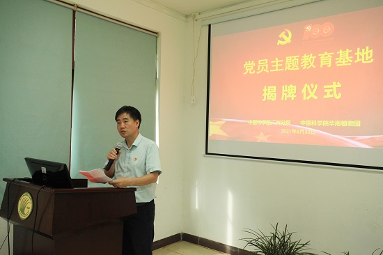 6月30日,中国共产党成立100周年纪念日之际,中国科学院广州分院、中国科学院华南植物园党员主题教育基地揭牌仪式在华南植物园举行。广州分院分党组书记陈广浩、院党史学习教育第19指导组组长黄良民,华南植物园党委书记魏平、主任任海及党政领导班子成员,广州分院及分院在穗单位党建部门负责人,华南植物园党支部书记等40余人出席。华南植物园党委副书记/纪委书记徐海主持揭牌仪式。