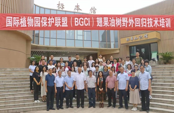 由国际植物园保护联盟(BGCI)资助、秦岭国家植物园承担的“濒危树木翅果油树(Elaeagnus mollis Diels)保护项目”野外回归技术培训近日在该植物园成功举办,来自秦岭国家植物园、陕西省西安植物园、周至县林业局、楼观台试验林场和当地居民代表等80人参加了此次野外回归技术培训活动。