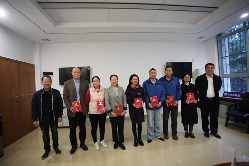 随后,综合办科学传播主管周飞根据新修订的《中国科学院华南植物园科学传播工作表彰奖励办法》,介绍了2021年科学传播“优秀个人”和“优秀报道”的评选方法和依据,并宣读了获奖名单。徐海、朱汉斌、综合办主任郑祥慈为14位获奖者颁奖。