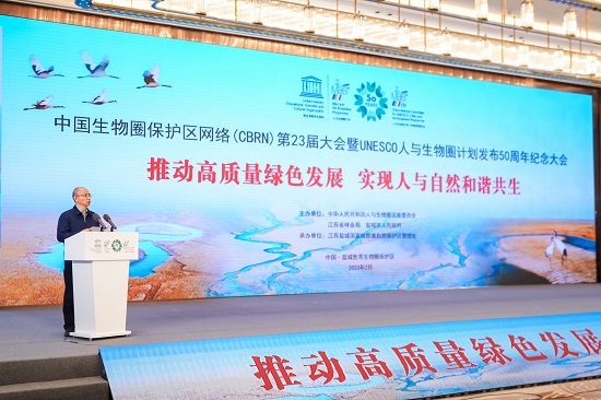 2月14-16日,由中国人与生物圈国家委员会、江苏省林业局、盐城市人民政府主办,江苏盐城国家级珍禽自然保护区管理处承办的中国生物圈保护区网络(CBRN)第23届大会暨UNESCO人与生物圈计划发布50周年纪念大会在江苏省盐城市举办。本届大会以"推进高质量绿色发展 实现人与自然和谐共生"为主题,深入探讨中国生物圈保护区的相关工作,为生态文明建设献计献策。来自国家相关部委、中国生物圈保护区网络成员、科研院所等近200名嘉宾和代表出席会议,鼎湖山国家级自然保护区范宗骥、欧阳学军、彭丽芳和戴玉映参会。