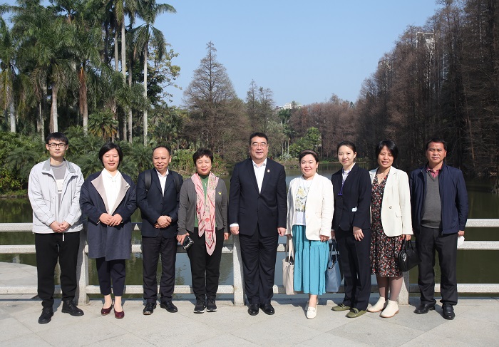 2月20日,中国外文出版发行事业局(简称中国外文局)副总编辑、国际传播发展中心主任陈实率代表团一行6人访问华南植物园。华南植物园党委副书记/纪委书记徐海,综合办公室、园艺中心等同志热情接待来宾并陪同调研。