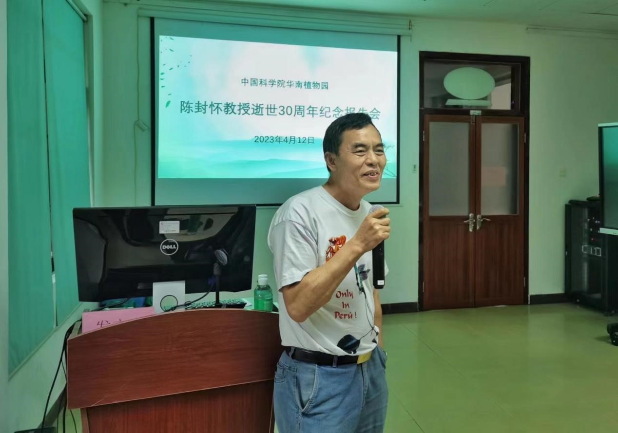 报告会上,陈忠毅研究员以陈封怀入党经历为切入点,讲述了他爱国奉献的科学家情怀。同时,结合老照片和陈封怀的诗画,全面介绍了他在华南植物园期间科学研究、学术交流方面的工作。最后以陈封怀的诗句“植物学家丹青手、一片丹心待后守”,表达了陈封怀对青年科学家和研究生的殷切厚望。陈贻竹以《追忆和期望》为题,追忆父亲创建庐山植物园的艰辛坎坷,以及陈封怀服从国家安排,辗转南京、武汉、广州建设植物园的艰辛经历。陈贻竹认为学习前辈的精神,对中国传统文化的秉持是我们对先人最好的缅怀,也是对未来的期望。陈封怀的学生夏念研究员回顾了陈封怀不畏条件艰苦、不惧个人安危,致力科研、服务国家的感人故事。档案室彭玉香以《走进去,跳出来——浅谈陈封怀教授纪念集编研》为题,结合陈封怀纪念集及纪念视频的编纂、名人档案收集整理工作,深情讲述了对老一辈科学家精神的理解与感悟。会上,大家追思和缅怀陈封怀为中国现代植物园的创立与发展、植物分类学研究作出的重要贡献,学习他严谨治学、开拓创新、拼搏奉献、提携后进的治学品德,表达对他的深切思念。