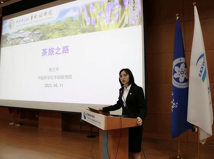 5月11日,中国科学院广州分院团委举办纪念五四运动104周年表彰大会暨“学思想见行动 启新程创新绩”演讲比赛。广州分院分党组书记、院长陈广浩为“2021~2022年度中国科学院广州分院优秀青年科技工作者”颁发荣誉证书,华南植物园曾兰亭研究员获此殊荣,并作为获奖代表在大会上分享她的“茶旅之路”,通过介绍自身的科研成长之路,激励广大青年科技工作者勇于担当,以更加坚定及强烈的使命感心系“国家事”、肩扛“国家责”。
