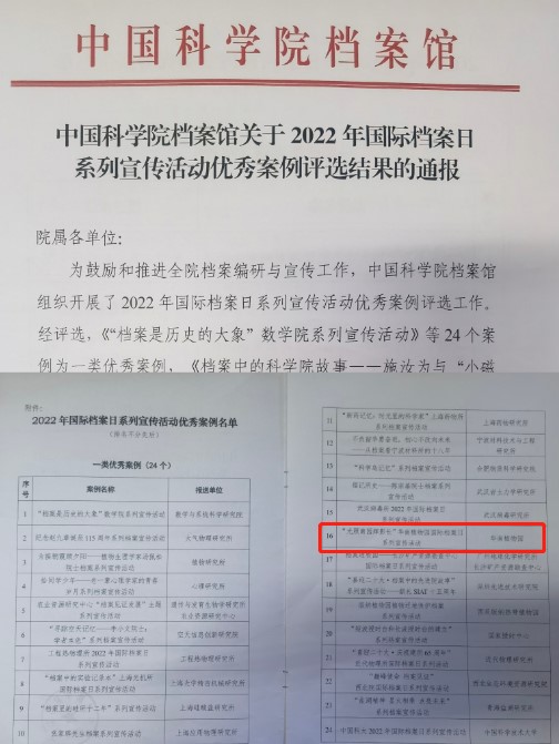 《光照南园辉影长》荣获2022年中国科学院档案编研宣传一类案例