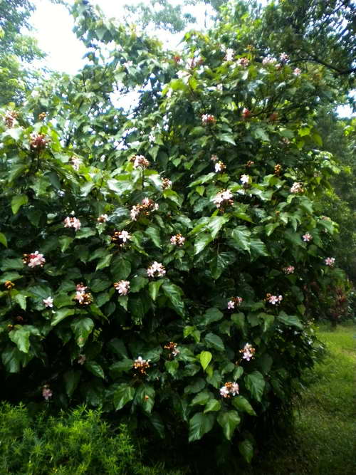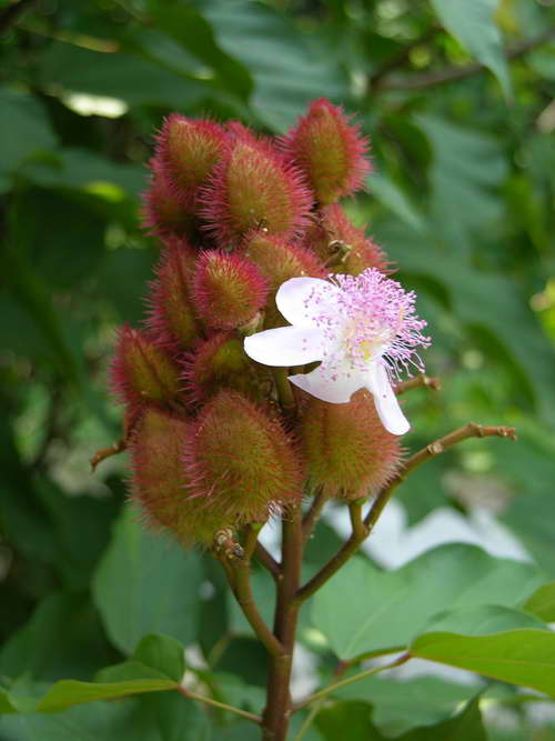 红木(Bixa orellana L.),又名胭脂木(Annatto Tree),来自红木科(Bixaceae)的红木属。该科全世界仅有3属6种,而我国仅此1属1科。原产热带美洲,17世纪西班牙人将之引到了东南亚。现马来西亚、东印度群岛、东非、巴西、加勒比海地区和墨西哥等地均有分布。我国广东、云南、广西、台湾等地有引入栽培。