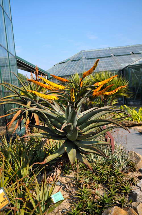 植物配置上,在人工模拟的沙漠干旱气候下,采用生态园林手法,将来自世界各地的仙人掌类和多浆植物大散布、小聚集的布置,以群落化方式的展示。放眼望去,这些来自大漠的绿色精灵们,或秀气隽永、或憨态可掬、或高大伟岸、或高雅华贵,行走其间、流连忘返。