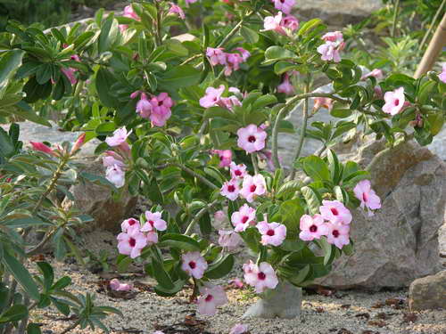 本区主要展示原产地在非洲大沙漠和稀树荒漠地带的代表性沙漠植物,收集展示植物种类100余种。以身披银针、霸气十足的非洲霸王树(Pachypodium lamerei),枝干遒劲、花艳如火的沙漠玫瑰(Adenium obesum),鬼斧神工、叹为观止的鬼切芦荟(Aloe marlothii),孑然一身、无花无叶的光棍树(Euphorbia tirucalli)等为群落骨干,配合风蚀岩石、流沙孤壁的沙漠景观,其间或群生,或点缀着其他芦荟属(Aloe sp.)、虎尾兰属(Sansevieria sp.)等沙生植物。仿佛让游人置身于鹰飞孤寂、广袤无垠的非洲大荒漠之中。