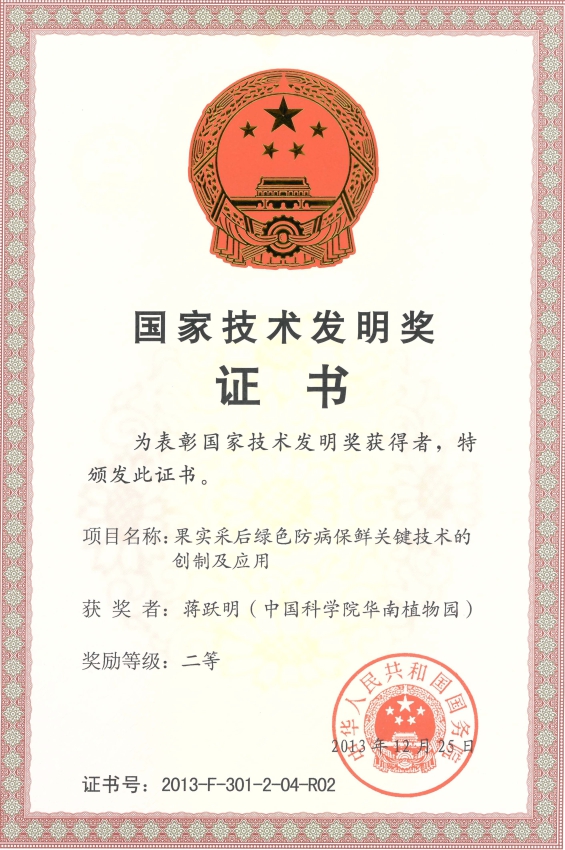 2013年度国家技术发明二等奖:果实采后绿色防病保鲜关键技术的创制及应用