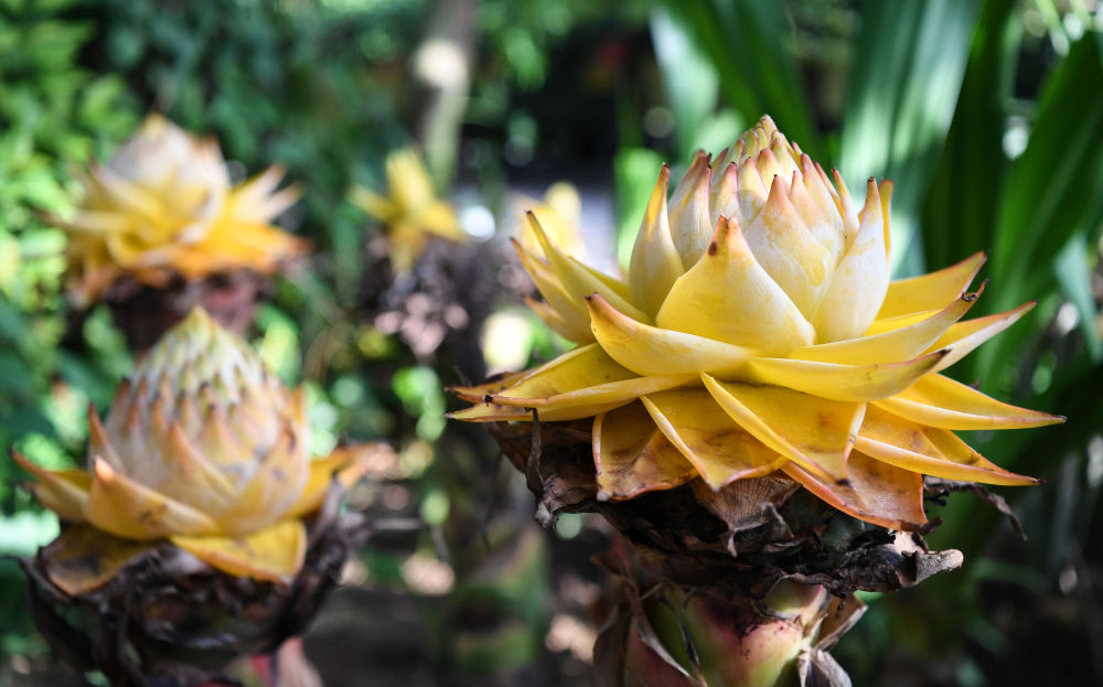 华南植物园热带雨林馆内的地涌金莲,是我国特有的珍奇花卉(12月3日摄)。新华社记者邓华摄