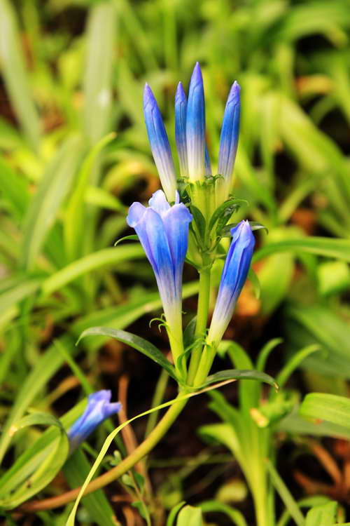 沿着盘山路拾级而上来到山体的顶端,坐落正中的是一座方形的玻璃房,这就是高山植物区,之所以采用这种房中房的形式,主要是考虑节约能源和有效控温。它的面积只有12平方米左右、高度2.5m,有独立的控温设施及补光加湿系统,将温度控制在17℃以下。景观上也是在有限的空间内采用盆景的造景手法,在馆内中间部位用景石模拟出两条蜿蜒的山脉,两侧地形塑成缓坡,其间点缀景石,配置以草本或垫状为主高山植物,营造出缩微的高山草甸和流石滩的自然生态景观。高山植物一般生长在高山林线以上、雪线以下的地带,通常分布在海拔3000m以上。因此,馆内目前收集的植物主要是来自青藏高原海拔3000-4500m之间的高山草甸或冰川流石滩,以草本为主,约有150种。