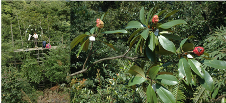迁地保护在东莞市大岭山森林公园的长梗木莲植株