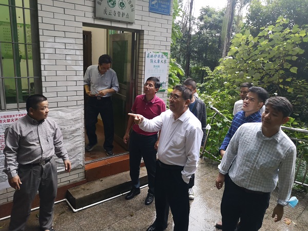 10月13日重阳节前夕,华南植物园党委副书记/纪委书记徐海与广州分院办公室主任王冬等一行5人组成安全工作检查组,到鼎湖山保护区检查森林防火与安全保卫工作。保护区管理局局长夏汉平、副局长范宗骥,以及办公室、管护科等部门同事参加座谈会并全程陪同检查。