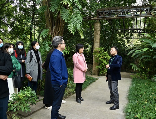 华南植物园主任任海首先为参会代表简要介绍了植物园悠久的历史、定位与使命,同时我园作为国家队聚焦主责主业所取得的科研成果,随后带大家参观了我园第一个专类园棕榈园及世界级经典园林景点龙洞琪林,由此引申出我园在园林景观与植物资源开发利用上对国家、地方经济所作出的贡献。任海还接受了广州电视台的专访,推介了我园虎年寻迹植物展等新春三大主题活动。