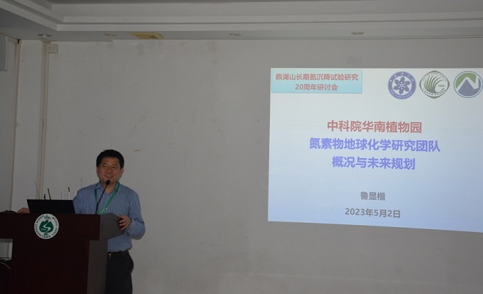 5月2-3日,鼎湖山氮沉降试验研究20周年学术研讨会在广东肇庆鼎湖山国家级自然保护区举行。来自中国科学院华南植物园等8家科研院所与高校单位的48位专家学者、博士后和研究生参会。开幕式由华南植物园氮素生物地球化学创新人才团队负责人鲁显楷研究员主持,华南植物园副主任闫俊华研究员、鼎湖山国家级自然保护区管理局局长夏汉平研究员、华南植物园氮沉降试验研究发起人莫江明研究员分别致辞,祝贺学术论坛召开。