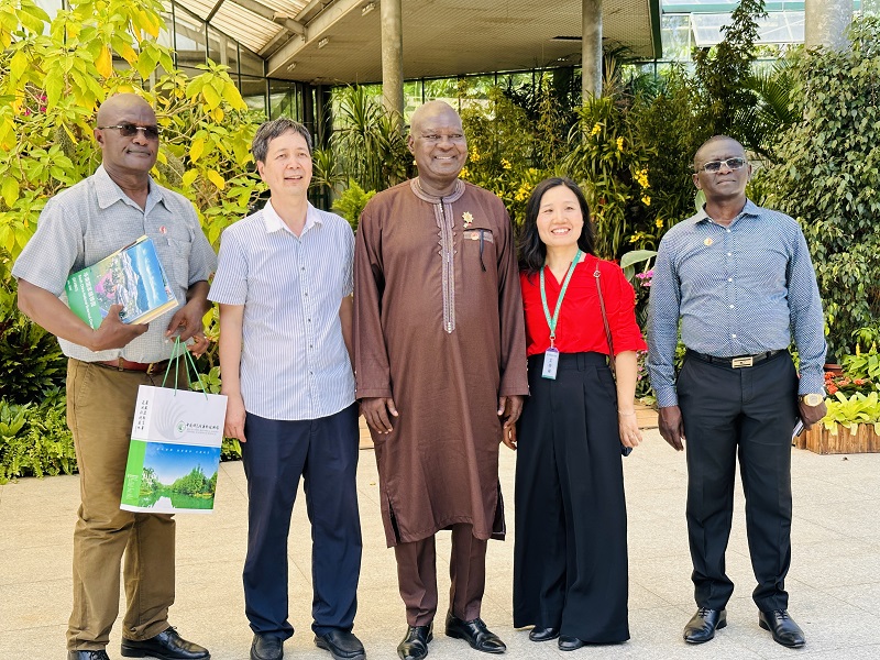 园主任任海接待了议长一行,陪同参观了华南植物园植物迁地保护园区,还介绍了龙洞琪林、温室群等展示区。任海特别向萨兰吉议长介绍了华南植物园种植的无忧树、佛肚竹、菩提树、降香等寓意美好的植物,以表达对议长一行的诚挚欢迎及对中非两国合作的期待。萨兰吉议长在“2023中非创新合作与发展论坛暨湖北国际技术交流会在中国召开之际访问华南植物园,为搭建两国科技合作桥梁打下良好基础。
