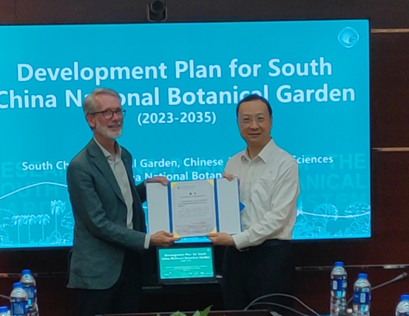 上午,与会专家调研了标本馆和展示区。下午咨询会上,华南植物园主任任海详细介绍了华南国家植物园建设背景、建设总则、建设内容、投资估算、运行管理、综合评价及其保障措施。经咨询和答疑,与会专家认为《建设方案》目标清晰、内容翔实,为了进一步建成世界一流植物园,建议加强国际合作与引领示范、公众服务功能、人才培养等方面工作。会后,广州市人民政府副市长王焕清、中国科学院广州分院副院长孙龙涛分别为与会专家颁发了华南国家植物园科学指导委员会委员聘书以及本次国际咨询专家证书。按照惯例,专家组组长Stephen Blackmore院士将结合专家现场意见和函审专家意见再形成正式的国际咨询意见。