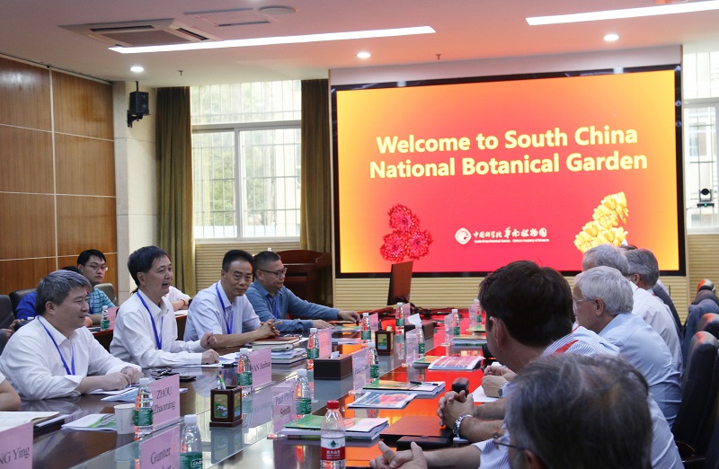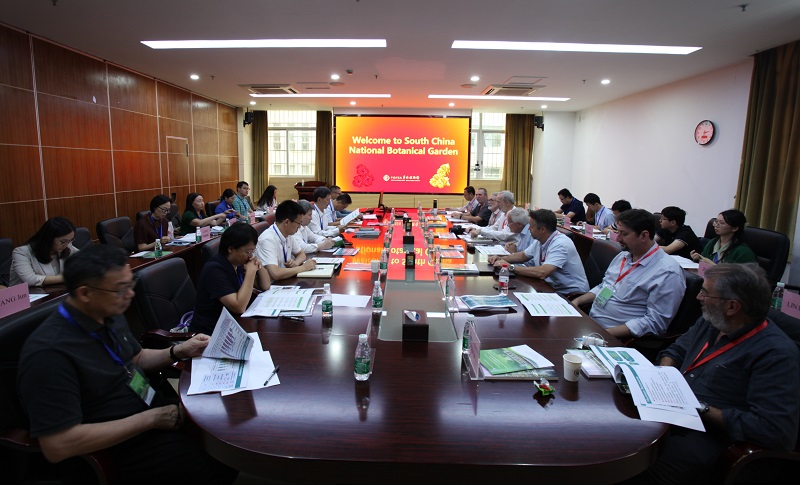 为落实国务院关于华南国家植物园建设要“强化自主创新,接轨国际标准,推动构建中国特色、世界一流、万物和谐的国家植物园体系”批复要求,高起点、高标准、科学有序推动华南国家植物园建设工作,华南植物园于10月18日在园内组织召开《建设方案》国际咨询会,来自10家世界著名植物园及国际机构的13位专家参加了此次咨询会(7位参加现场会,6位参加函审),其中包括国际植物园保护联盟(BGCI)主席Stephen Blackmore院士、国际植物园协会(IABG)主席Timothy John Entwisle、美国橡树泉基金会主席Peter Crane院士、英国邱园主任Richard Deverell、美国密苏里植物园主任Peter Wyse Jackson、英国爱丁堡植物园主任Simon Stephen Milne等世界顶级专家。园领导班子成员及部门负责人、华南国家植物园共建工作专班成员单位代表列席会议。