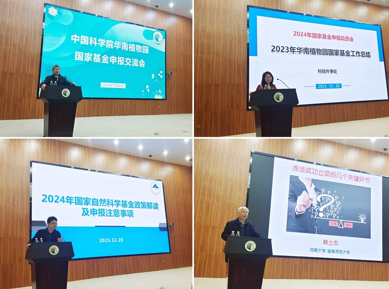 会上,闫俊华致辞感谢两位老师在百忙之中为我园科研人员讲解撰写国家基金申请书技巧和解读国家基金政策。他表示,国家基金项目对科研工作,特别是起步阶段至关重要,是科研人员基础研究能力和水平的一个重要体现。2023年华南植物园在国家基金的立项突破新高,取得较好成绩,希望科研人员在2024年再接再厉,争取在国家基金的申请中取得新突破。房迈莼介绍了2023年华南植物园国家基金基本情况、存在的主要问题和2024年国家基金申报工作安排。
