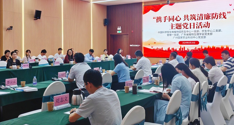 6月19日,中国科学院华南植物园农生中心第一党支部、第二党支部、管理部门第一党支部和广州国家现代农业产业科技创新中心(简称“科创中心”)党支部开展了“携手同心 共筑清廉防线”为主题的联学共建活动。华南植物园党办/纪监审办副主任李楠、农生中心第一党支部书记/中心副主任段学武研究员、农生中心第二党支部书记曾宋君研究员,科创中心综合部部长胡玉伟、科研部部长杨彩娟,以及4个党支部成员50余人参加活动。