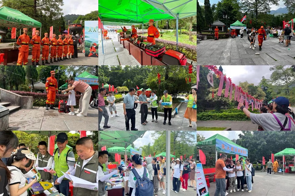 肇庆市鼎湖山防火指挥部副总指挥范宗骥代表主办方作简短致词后宣布当天的活动开始。此次活动除了在现场安置展板和派发森林防灭火宣传资料进行森林防灭火知识宣传外,还设置了森林防灭火装备展示体验区、无人机监测操作体验区和森林防火有奖猜谜活动区三个互动区域,以吸引群众和游客参与,以增强宣传效果。